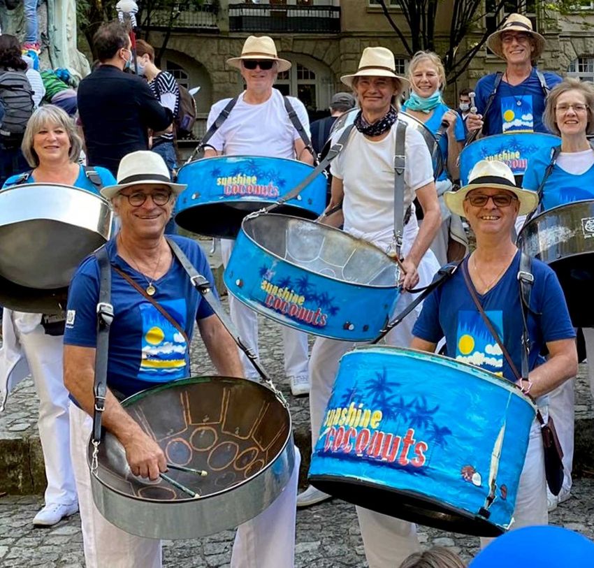 • Im Repertoire finden sich viele bekannte Songs zum Mitschnippen und Mitsingen: Von »Wochenend und Sonnenschein« bis zu Jazz-Standards. Die Marching Band benötigt für Auftritte nichts als Publikum und Platz zum Laufen und spielt in einer Grundbesetzung von sieben Spieler/innen, kann aber auch als Band mit bis zu 20 Spieler/innen gebucht werden.